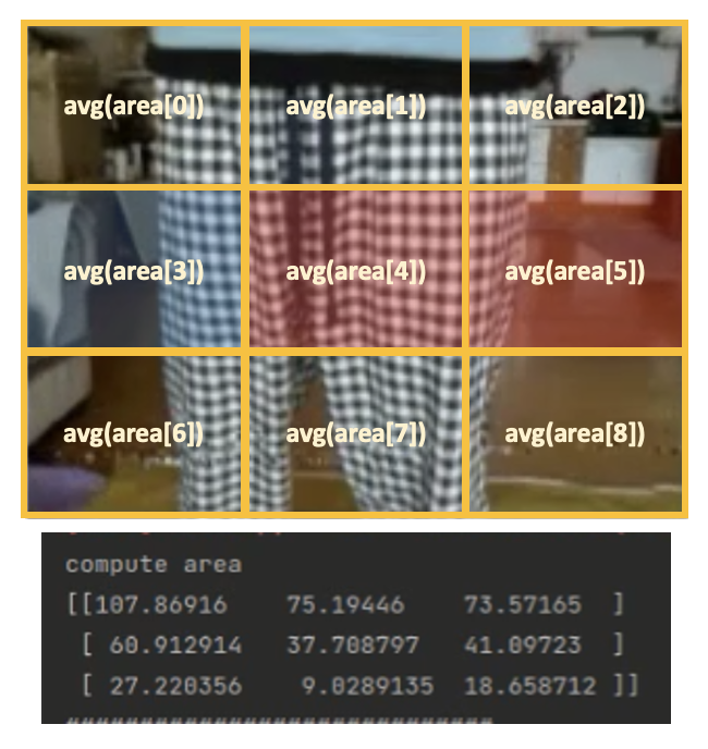 Depth estimation model인 DenseDepth을 사용하여 실시간으로 드론의 이미지로부터 depth 이미지를 출력하여 장애물 존재 여부를 파악한다. 만약에 depth 값이 작아 진다면, 즉 거리가 가까운 물체가 존재한다면 해당 영역의 반대 방향으로 주행 각도를 틀어 장애물을 회피한다. 사진처럼 드론의 이미지를 3x3의 9개의 영역으로 나누고 2번째 행의 영역에서 장애물이 왼쪽 혹은 가운데에 존재하면 오른쪽으로, 장애물이 오른쪽에 존재하면 왼쪽으로 피하게끔 구현하였다. 위의 DenseDepth 테스팅 영상에서 오른쪽 창에 실시간으로 계산되는 실수값이 영상 이미지를 3x3의 9개의 영역으로 나누어 각 영역 내의 depth값들을 평균내어 9개의 depth값을 출력한 것이다.