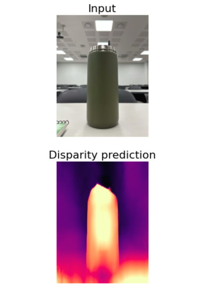 카메라로부터 21cm정도 떨어진 텀블러에 대해서는 배경보다 확연히 구분되는 depth값을 계산하였지만, 42cm 만큼 떨어져 있는 텀블러에 대해서는 텀블러 뒷배경과 비슷한 정도의 depth값을 가진다고 추정하였다. 적어도 30-40cm 정도 떨어진 물체에 대해 드론이 장애물이라고 인식을 해야하는데, 이 모델을 사용하면 가까운 물체도 장애물로 인식 못할 가능성이 높기 때문에 사용하기에 적합하지 않았다.