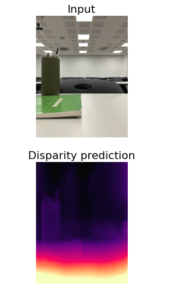 실시간으로 depth estimation을 할 수 있는 가벼운 모델이라고 해서 실행시켜 봤다. 알려져 있는 것처럼 추론하는데 0.1초의 짧은 시간이 소요되었다. 그러나 정확도가 MonoDepth보다도 낮았어서 사용할 수가 없었다.