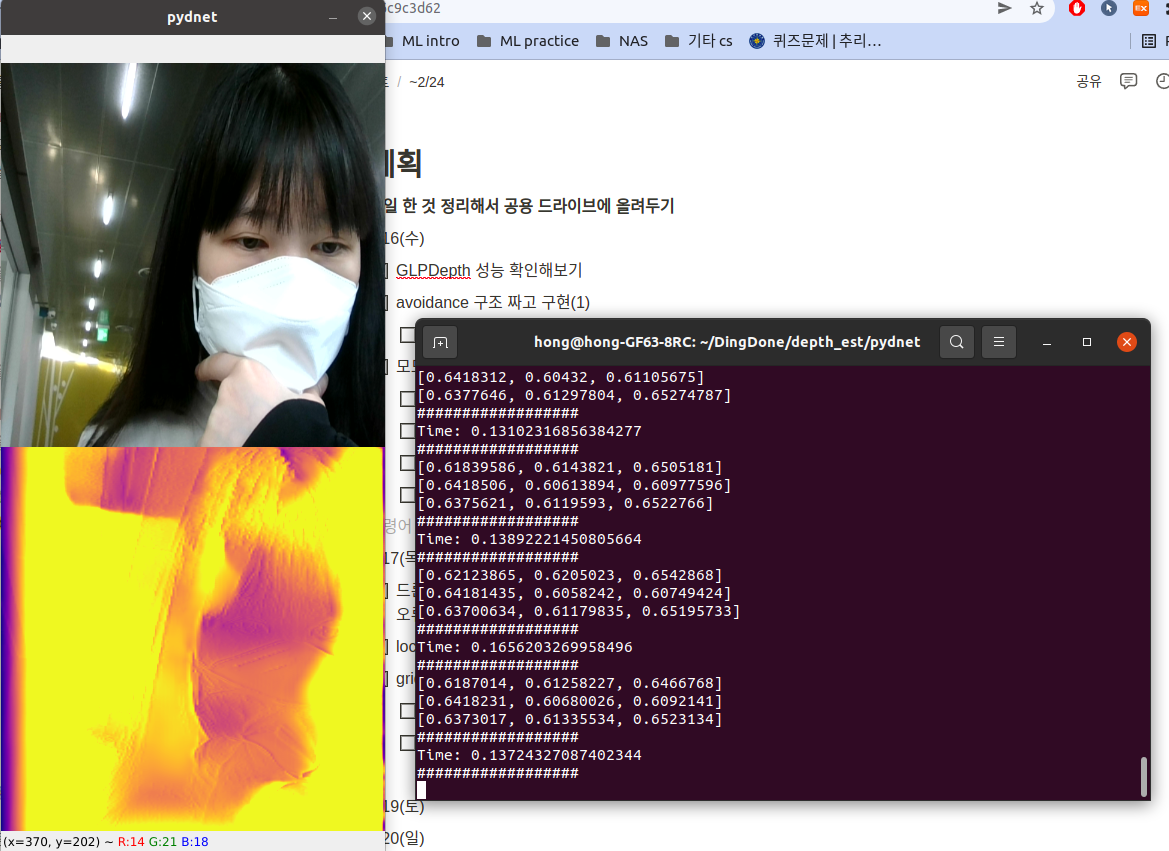 잘못적은게 아니라 모델 이름이 진짜로 BTS였다. 반갑게도 한양대 분들이 연구하였다. GLPDepth 다음으로 정확도가 높은 모델이었던 만큼 실제로 실행해봤을때 정확도가 높았다. 그러나 depth image를 계산해내는데 10초이상의 지연이 걸렸다. 지연 시간이 크면 장애물과 부딪히고 한참 뒤에 장애물을 회피하게 될 것이다. 따라서 이 모델도 사용하기에 적합하지 않았다.