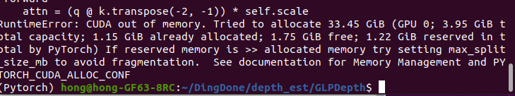 정확도가 높은 모델을 사용하기 위하여 당시(작년 겨울쯤) 기준으로 SOTA 모델들 중 깃허브 star개수가 가장 많았던 모델인 GLPDepth 모델을 사용해보려 시도해봤지만 모델이 너무 커서 실행할수가 없었다.